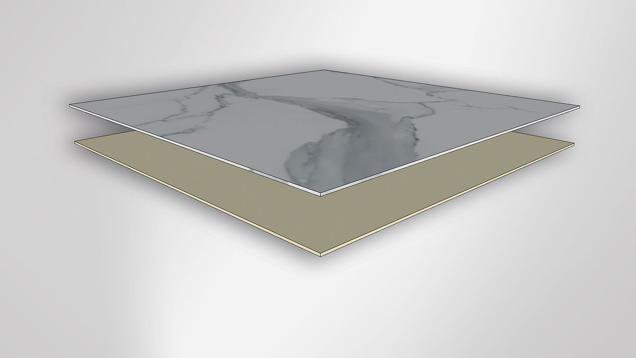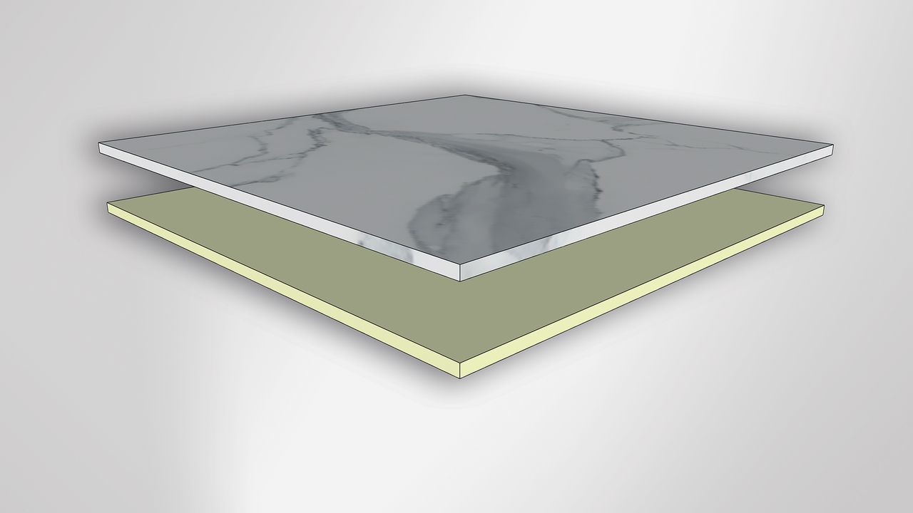 Pietra naturale su entrambi i lati, spessore ridotto e resistenza meccanica eccezionale. Spessore finale: da 4 a 8 mm