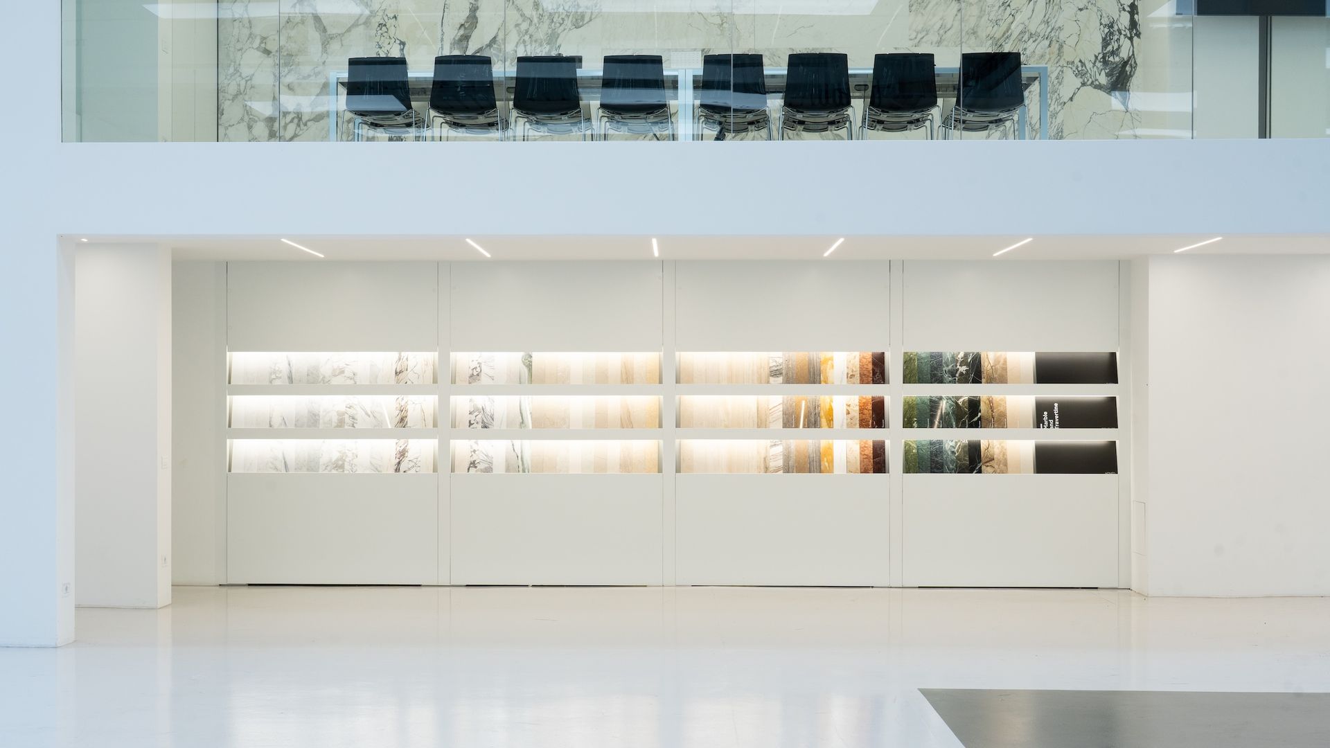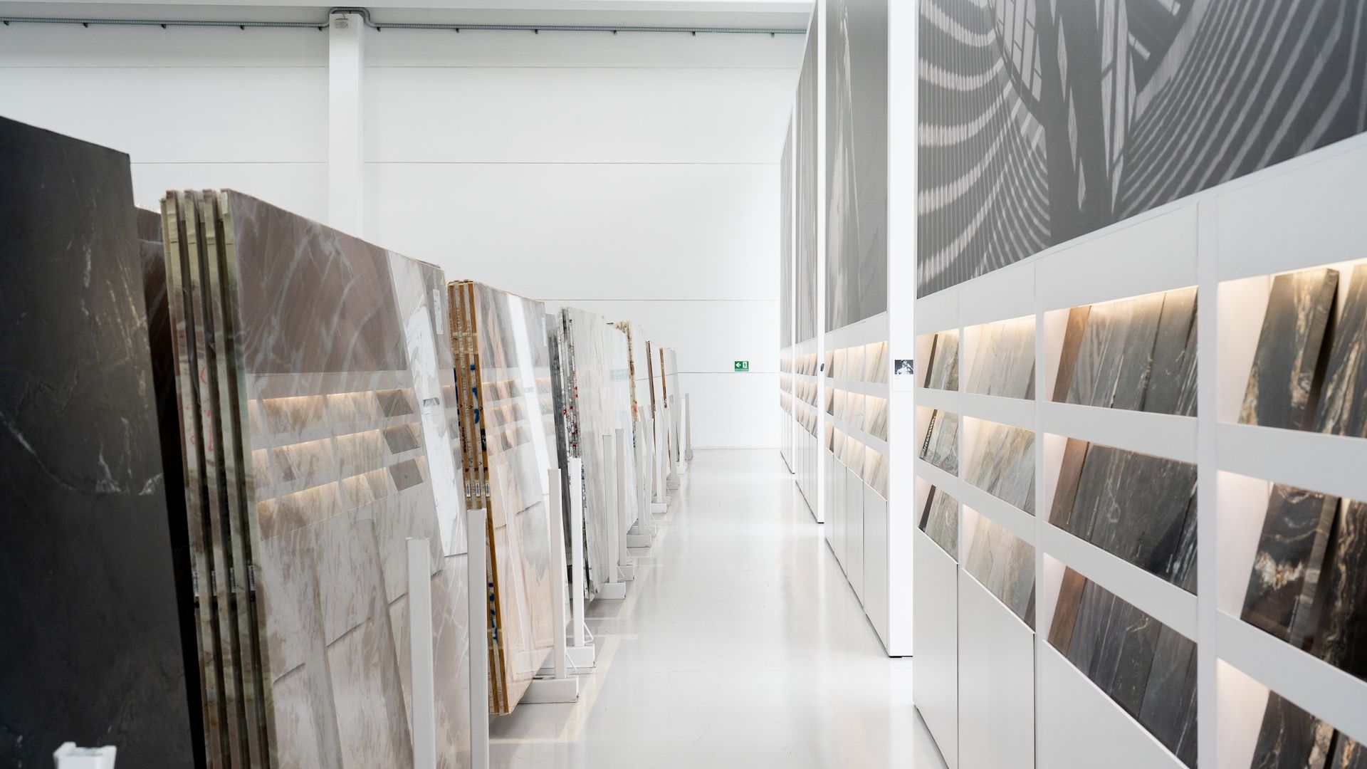 Un percorso luminoso e scenografico che celebra la diversità cromatica e materica della pietra. Qui, luce e trasparenza si fondono per esaltare la tridimensionalità dei materiali più rari, permettendo al visitatore di scoprirne sfumature, venature e potenzialità applicative.