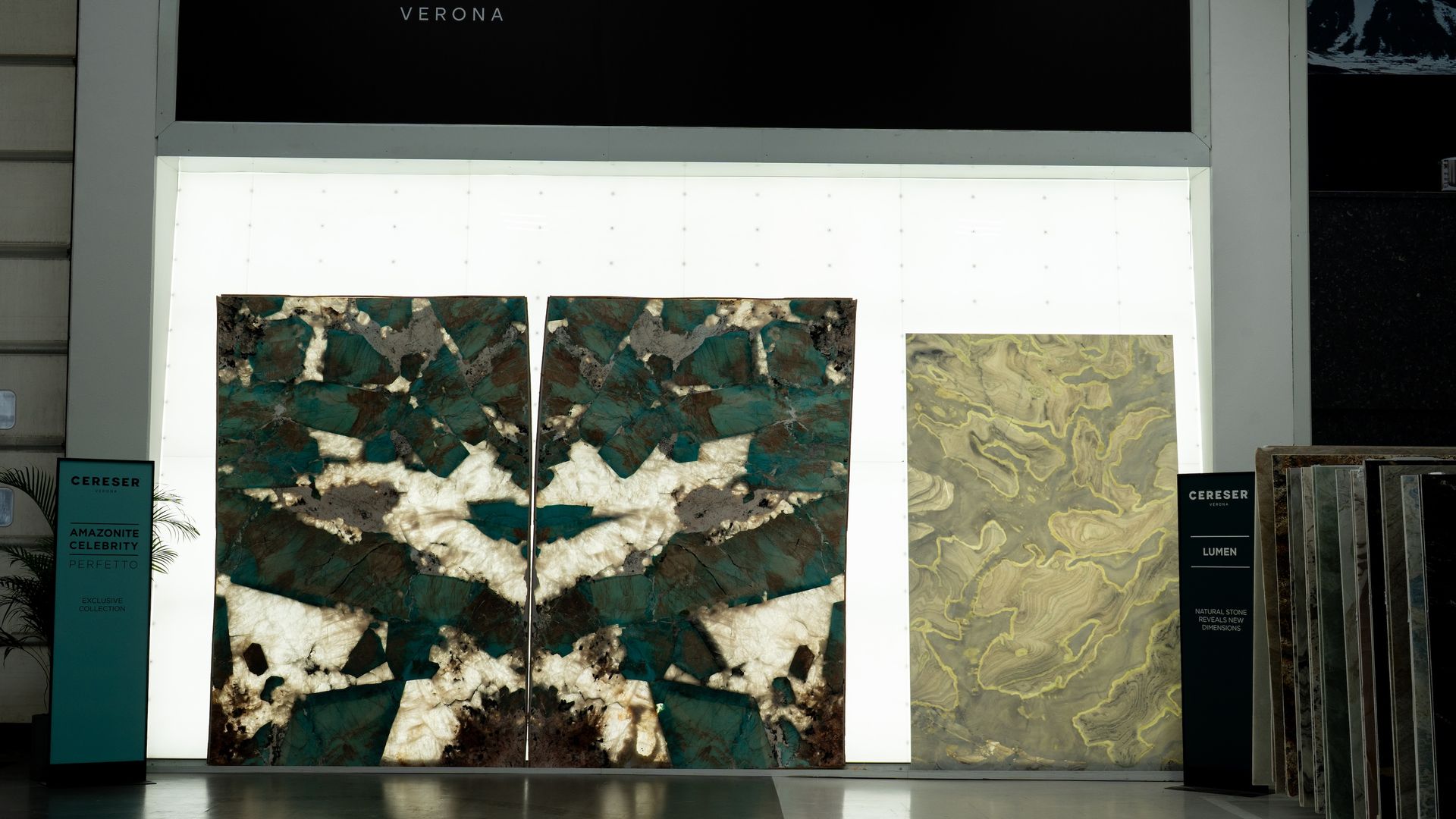 Un’installazione luminosa interattiva di oltre 7 metri di larghezza per 4 di altezza, capace di trasformare la pietra in pura luce e amplificarne l’effetto materico. Grazie alle sue ampie dimensioni, il Lightwall permette di esporre più lastre di grande formato in un’unica visione immersiva. Sintesi perfetta tra tecnologia e poesia visiva, rappresenta l’essenza dello stile CERESER.