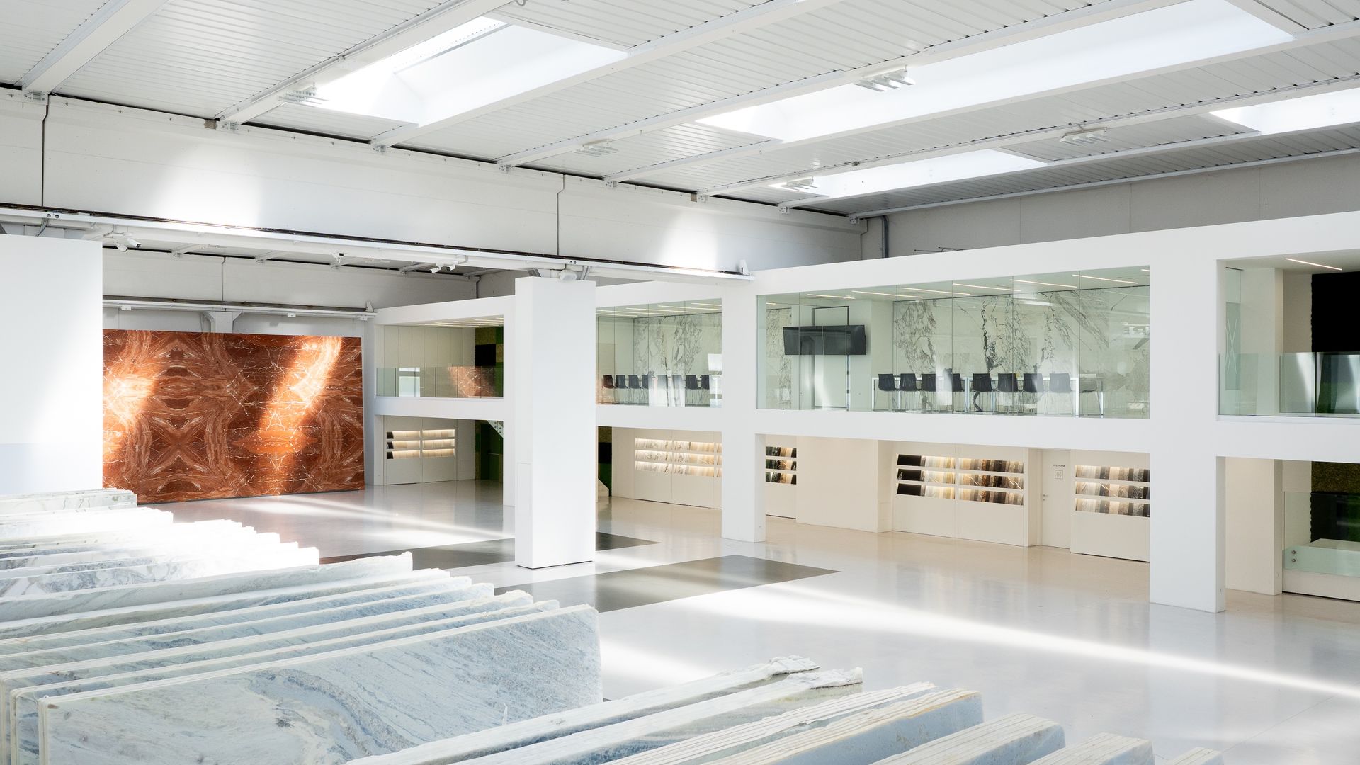 Su una superficie complessiva di oltre 50.000 mq, gli showroom e gli spazi operativi dialogano in modo fluido, offrendo un’esperienza immersiva in cui architettura, tecnologia e materia convivono in perfetto equilibrio.