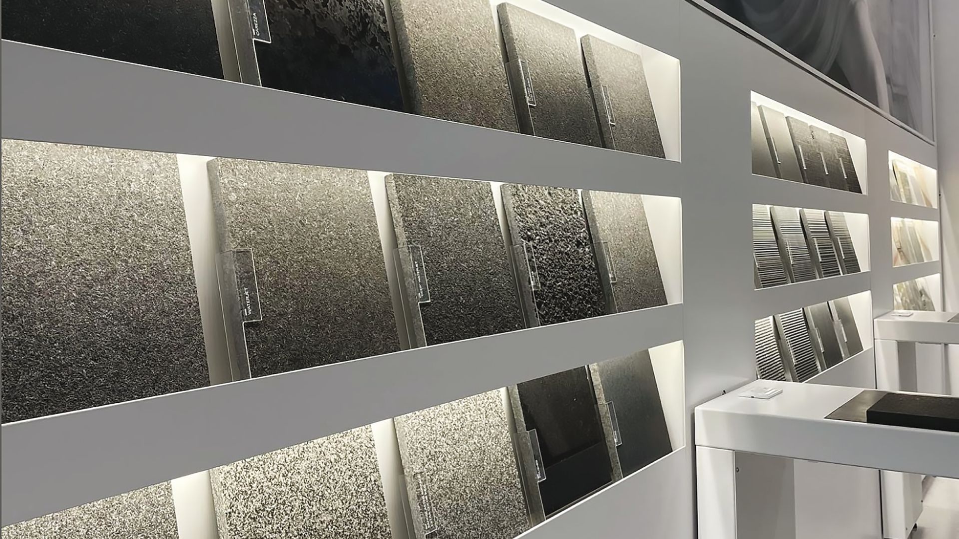 In queste aree dedicate, la pietra naturale rivela tutta la sua versatilità attraverso un ampio ventaglio di lavorazioni e texture. Ogni superficie racconta un carattere diverso — lucido, satinato, fiammato o patinato — offrendo a designer e clienti la possibilità di personalizzare ogni progetto con risultati estetici sempre unici.