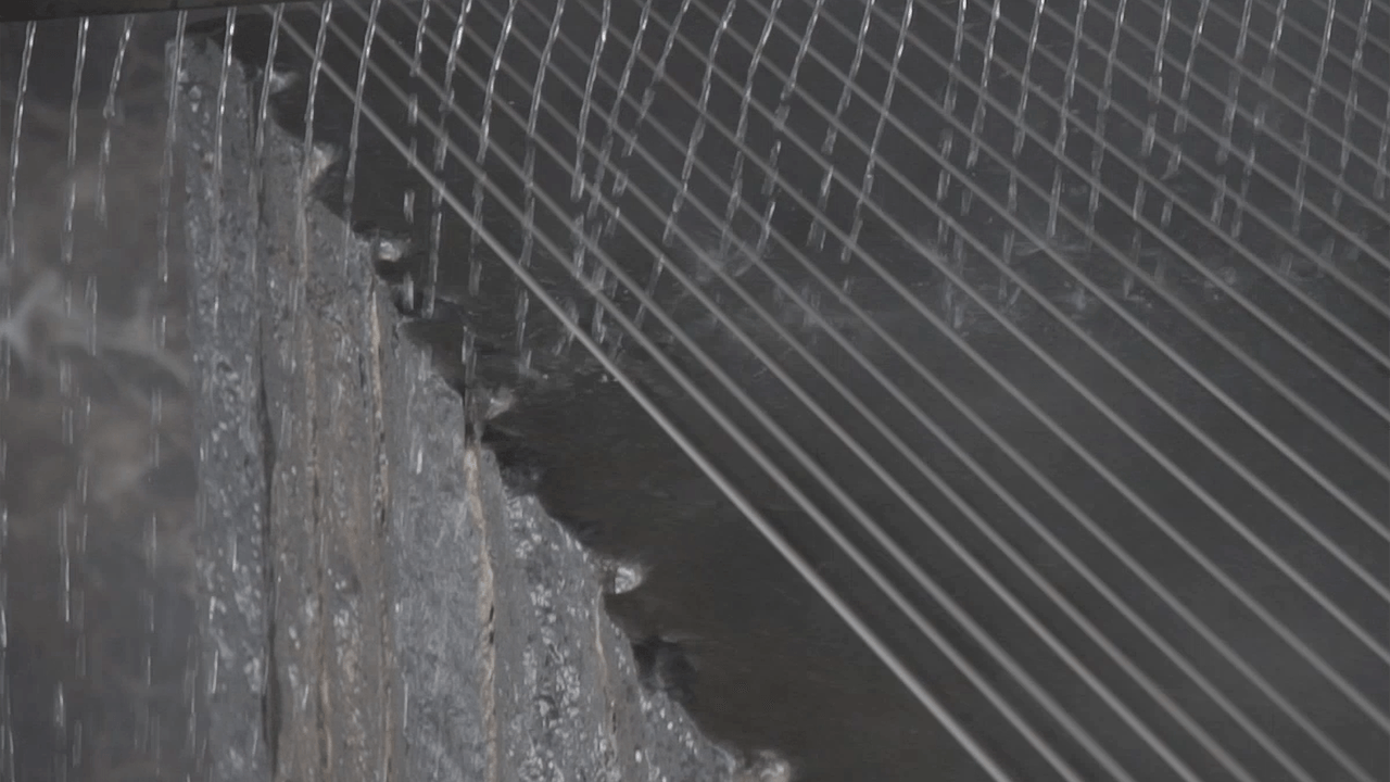 Grazie a tecnologie di precisione, ogni blocco viene tagliato con sistemi multifilo a filo diamantato, riducendo al minimo lo spreco di materiale in questa fase delicata. Ogni intervento è accuratamente calibrato per rispettare la natura della pietra e preservarne l’integrità.